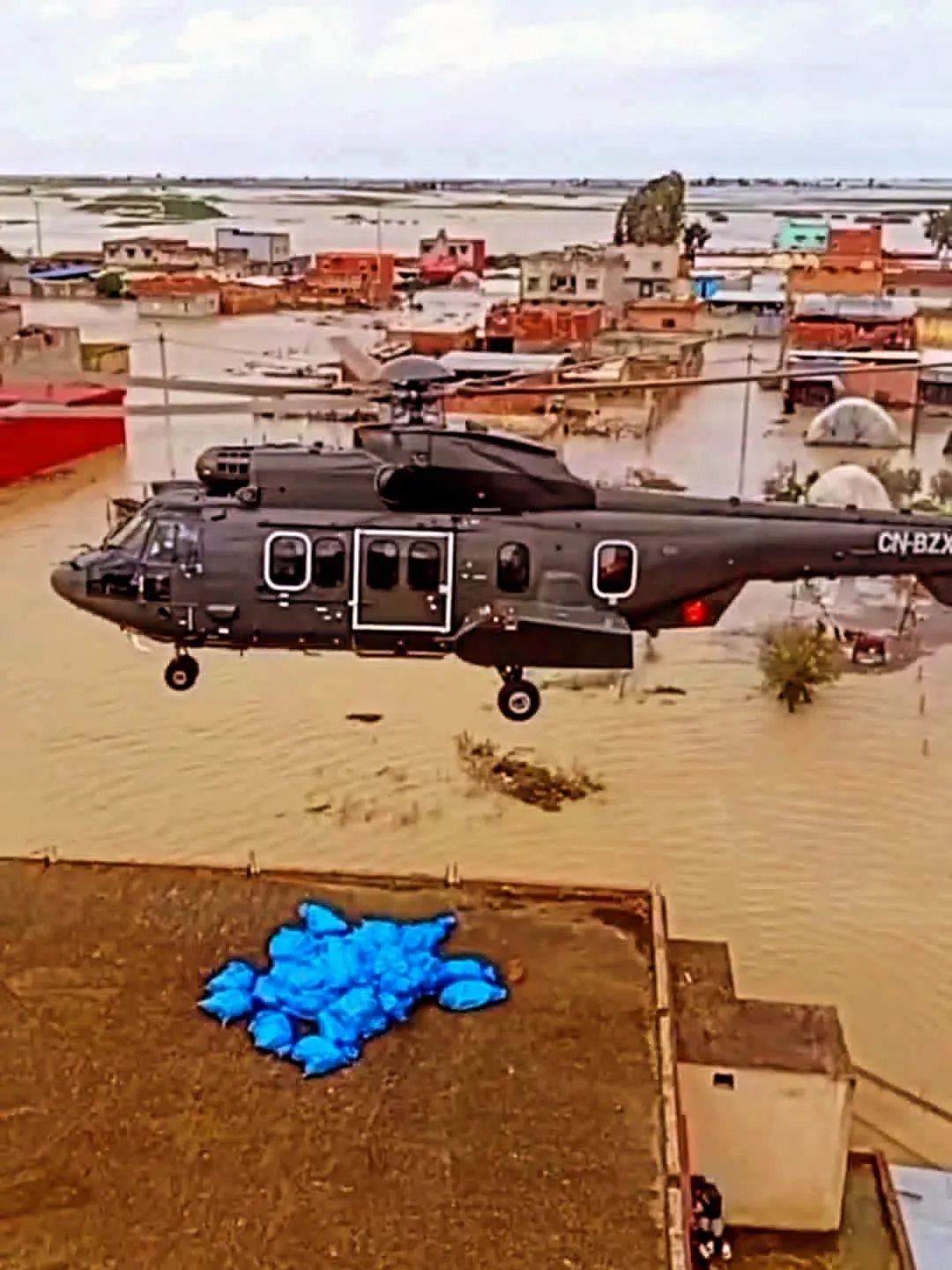 مروحية الدرك الملكي تفك العزلة عن متضرري الفيضانات بالمرضية ضواحي سيدي قاسم