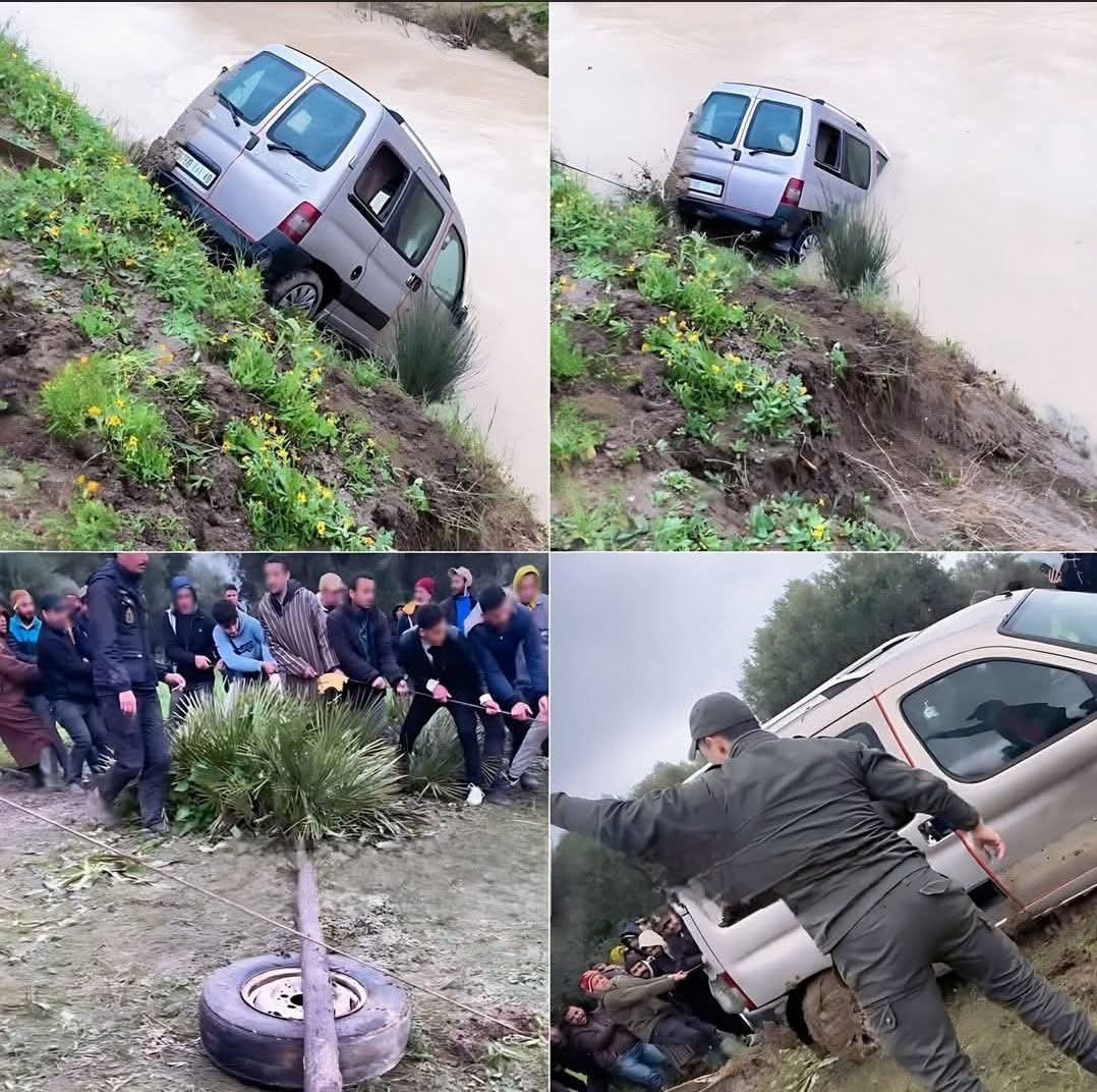 تلاحم إنساني بوزان.. شباب وسلطات ينقذون سيارة من الغرق في واد “درادر”
