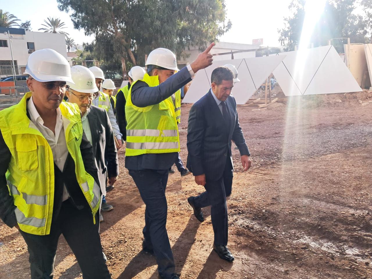 وقد رافق السيد الوالي خلال هذه الزيارة السيد رئيس مجلس جهة سوس ماسة والسيد النائب الأول لرئيس جماعة أكادير والسيد المدير الجهوي لوزارة الشباب والثقافة والتواصل، إلى جانب السيد المدير العام لشركة العمران سوس ماسة، والمهندس المعماري ومسؤولي شركات الدراسات وإنجاز الأشغال.