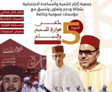 تستعد جمعية إكرام للتنمية والمساعدة الإجتماعية بأولاد تايمة لإطلاق فعاليات الدورة الخامسة من ملتقى المديح والسماع، في أجواء روحانية مميزة تعكس عمق التراث الصوفي المغربي. وتأتي هذه المبادرة إحياءً للقيم الدينية والفنية الرفيعة التي يزخر بها الموروث الثقافي المغربي، وتأكيداً على أهمية المديح والسماع كوسيلتين للتربية الروحية والتواصل المجتمعي. ويحمل برنامج الدورة الخامسة تنوعاً لافتاً، […]