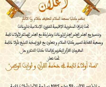 هوارة تحتفي بالقرآن الكريم في مهرجان نسوي مميز تحت شعار: “نساء أولاد تايمة في خدمة القرآن وثوابت الوطن”
